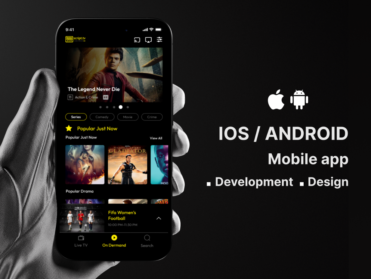 In this project, I developed a custom IPTV application for Script TV, enabling them to launch their branded OTT solution on mobile platforms. The application is available on both Android and iOS, providing users with a seamless streaming experience for movies and videos on demand.